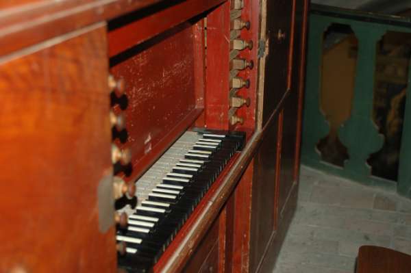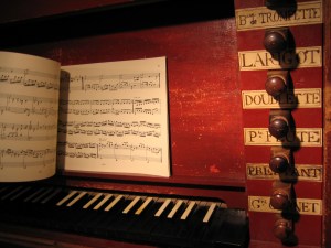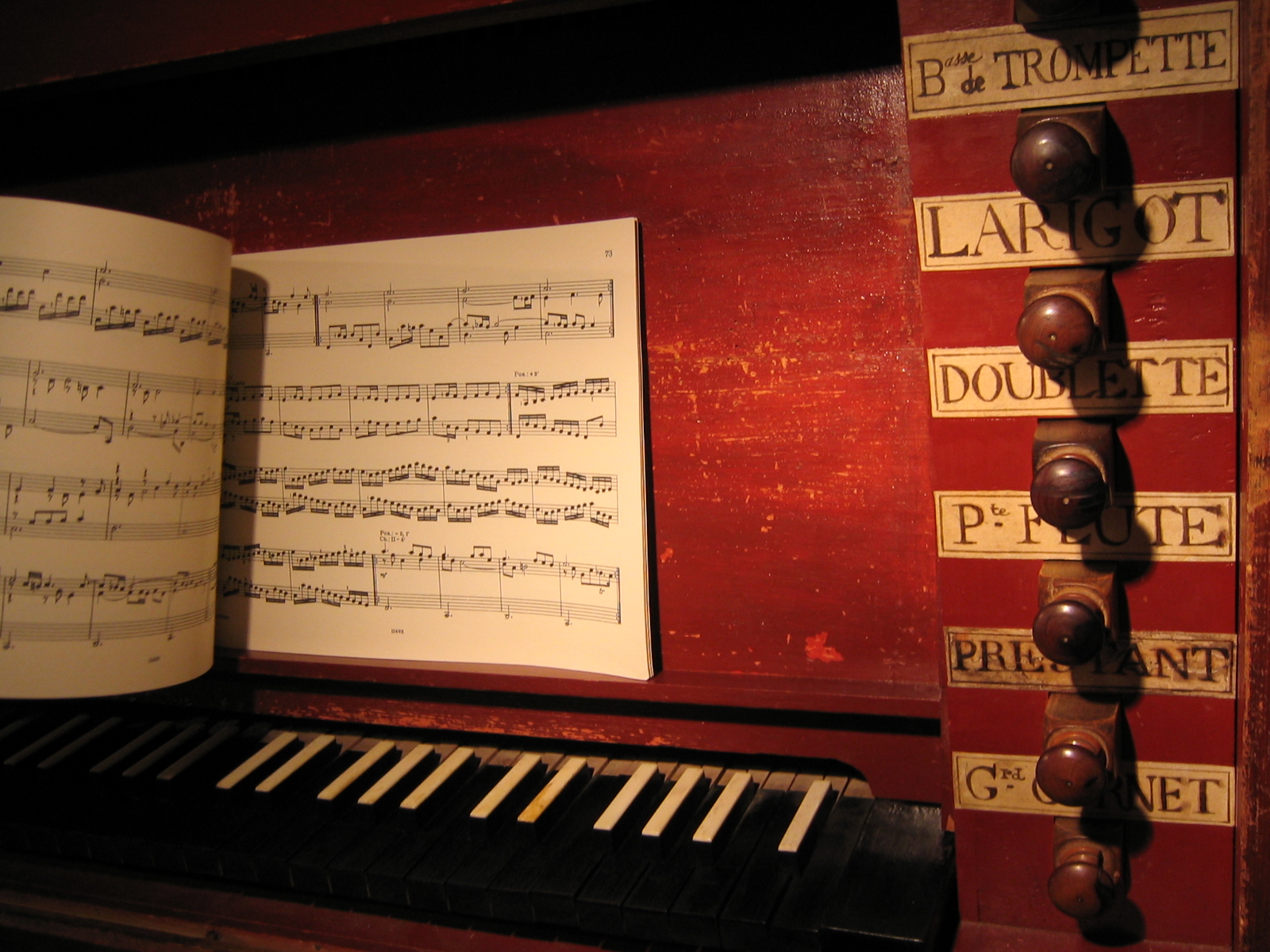 | Détail du clavier manuel et des tirants de registres côté ré. | ![]() |