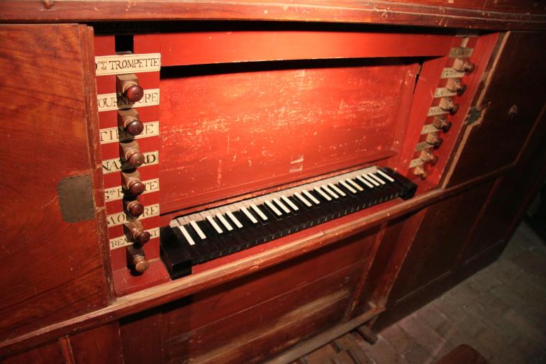 Le clavier manuel est logé en “fenêtre” dans le soubassement ou “massif” |