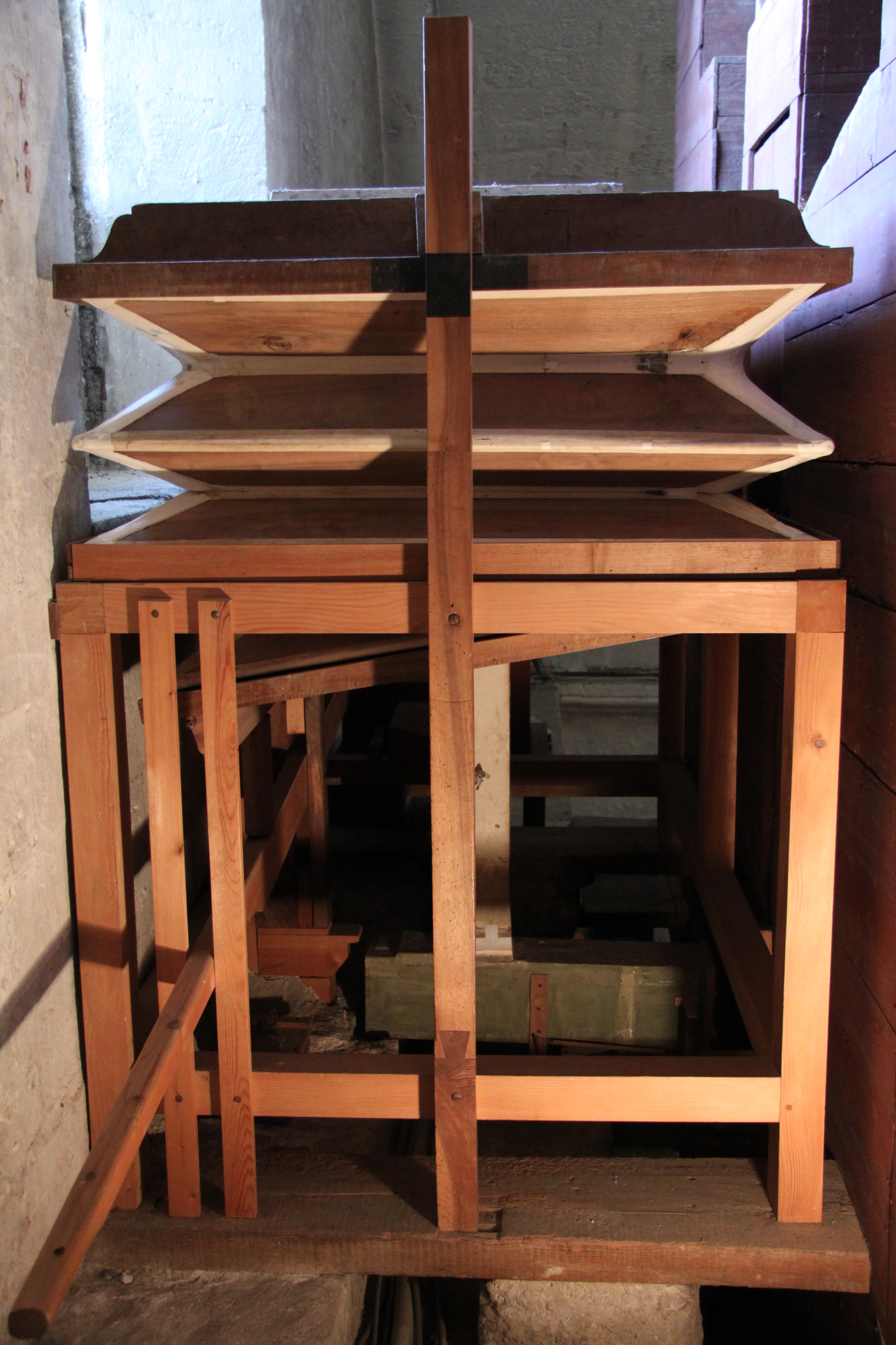 Il s’agit donc d’une soufflerie « à lanterne », et non pas d’une soufflerie cunéiforme telle qu’on les construisait généralement à l’époque. Son authenticité ne fait aucun doute, car elle est décrite avec précision dans le devis de 1786.